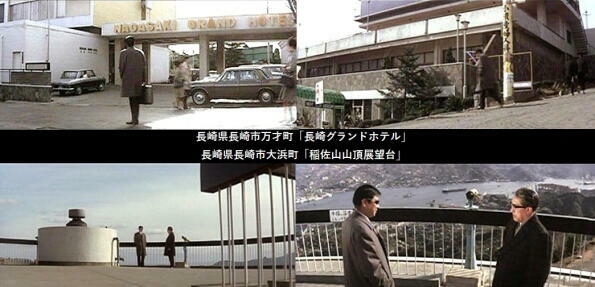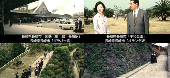 舞台はなさ危険です。石原裕次郎は、オランダ坂から長崎グランドホテルに向かいます。新聞記者の二谷英明と船に同乗し知合った浅丘ルリ子とグラバー邸であいます。 |