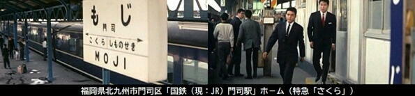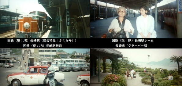まり子は寝台特急「さくら」で祖母(北林谷栄)と長崎に里帰りをします。寝台特急「さくら」は、1959年〜2005年東京と長崎(佐世保)間を走っていました。「さくら」の名称は、2011年から山陽新幹線・九州新幹線で運行している新幹線「さくら」に引き継がれました。 |