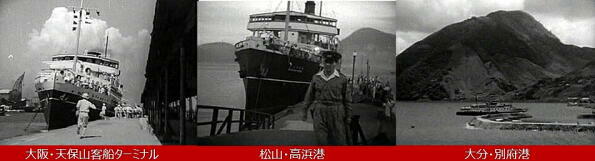 戦後直後の大阪(天保山)、神戸、松山(高浜)の港や別府の市内の風景、当時のフェリー船内の模様などを堪能できます。 |