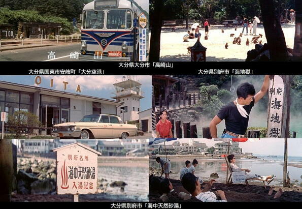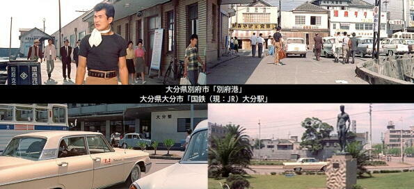 高倉健は別府の海運会社に就職し、別府港、別府温泉、高崎山などでロケが行われています。