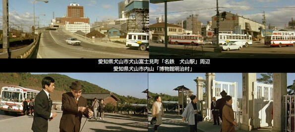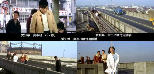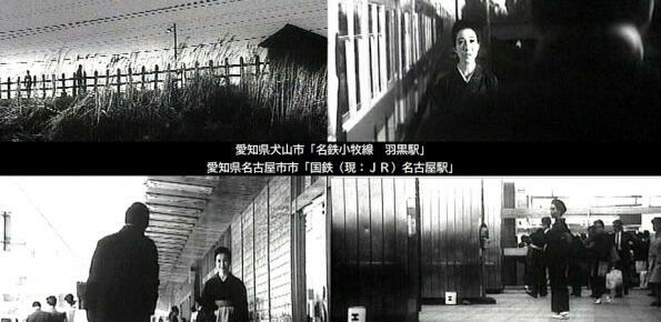 ロケ地は、藤田まことと新珠三千代の逃避行の待合せ場所の名古屋市「名古屋駅」、待合せに後に藤田まことが家族の元に決意を吐露する「向野橋 国鉄”現JR東海名古屋車両区”」、藤田まことの墓参りで訪れて新珠三千代と会う犬山市「名鉄小牧線 羽黒駅」などです。 |