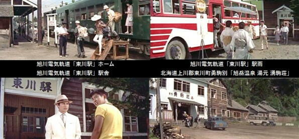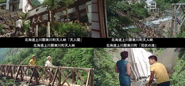 ロケ地は、青函連絡船戦場、北海度函館、旭川市内、旭岳温泉、東川町の旭川電気軌道「東川駅」「天人峡」「羽衣の滝」、東京都台東区「浅草松屋屋上遊園地」などです。 |