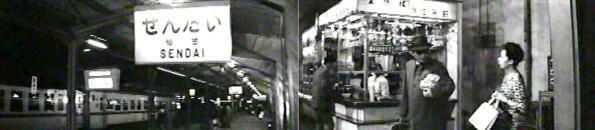 ロケ地は仙台駅でも行われています。不倫旅行の仙台駅から急行「北斗」で帰京しますが、車内で乗り合わせた川津祐介さんに写真を取られます。 |