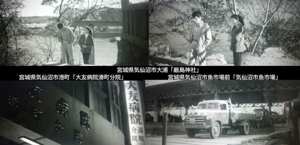 宮城県気仙沼市が部隊です。安井昌二は南風夕子との結婚の結納金を工面するために銀行などを回るロケ地は、八日町1丁目、2丁目付近です。安井昌二はトラック運転手で「気仙沼市魚市場」を往復します。船の火災で負傷した安井昌二は「大友病院港町分室」に運び込まれます。 |